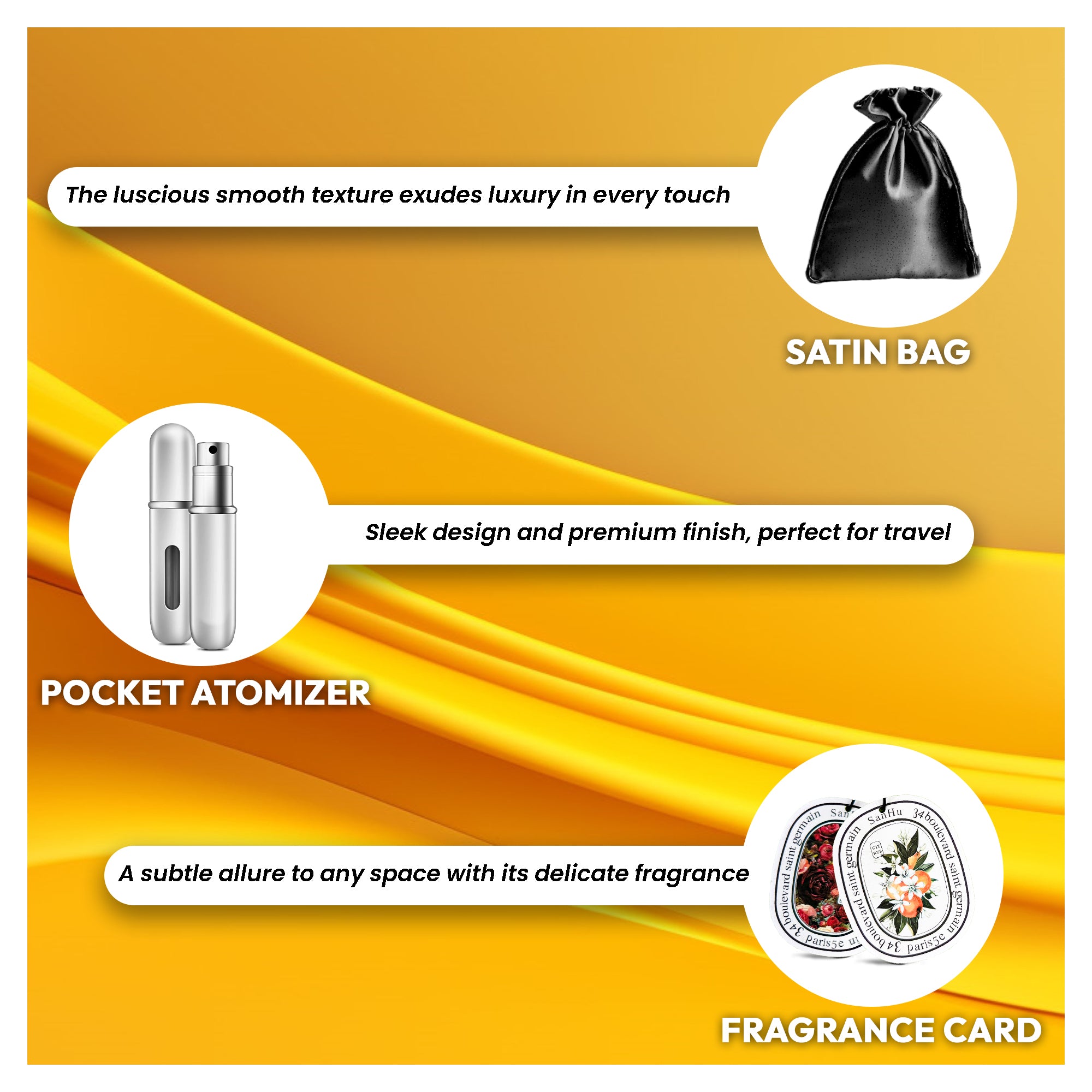 Whether for gifting or adding a touch of elegance and sophistication to your perfume closet, this meticulously designed smooth satin gift bag fulfills the charms of a perfect surprise for a loved one.
